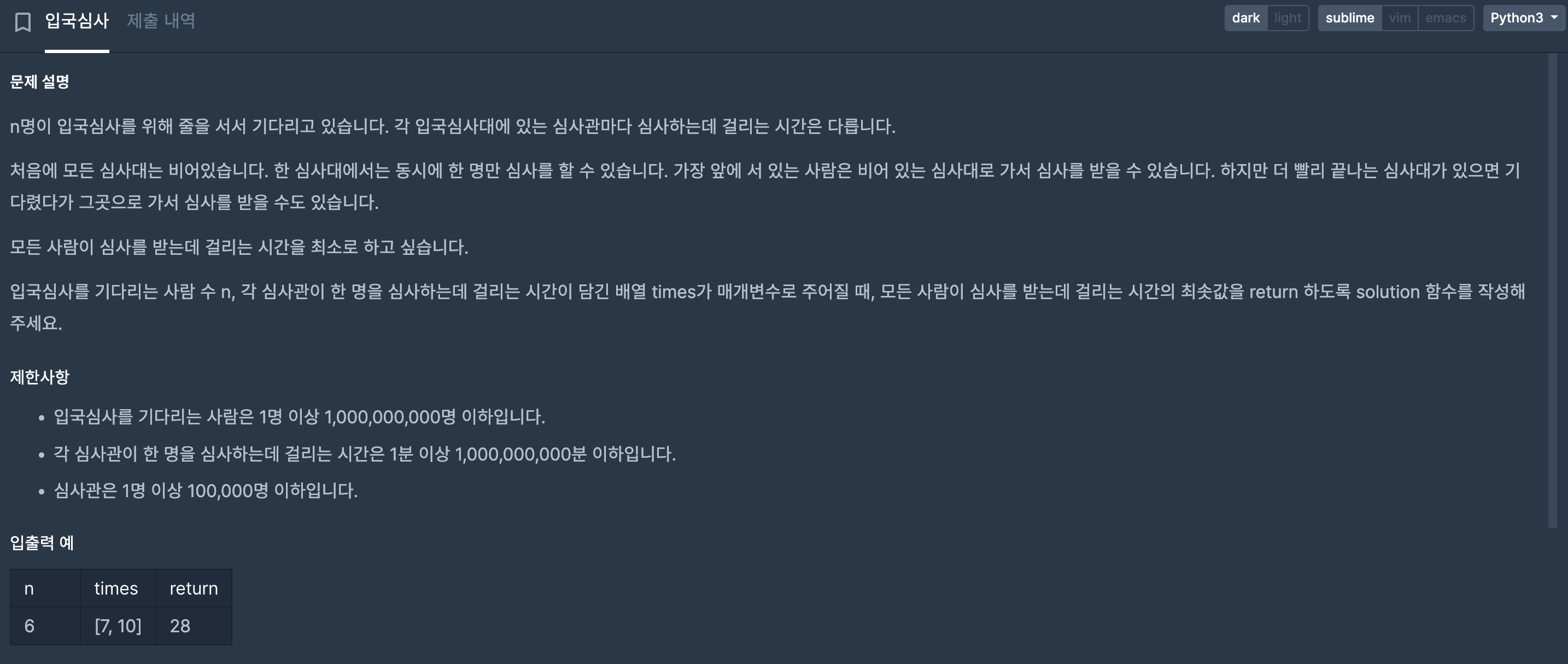 을 해준 값을 계속해서 people이란 변수에 저장해두면 중간 시간값인 mid 일때 몇명을 심사했는지 알 수 있다