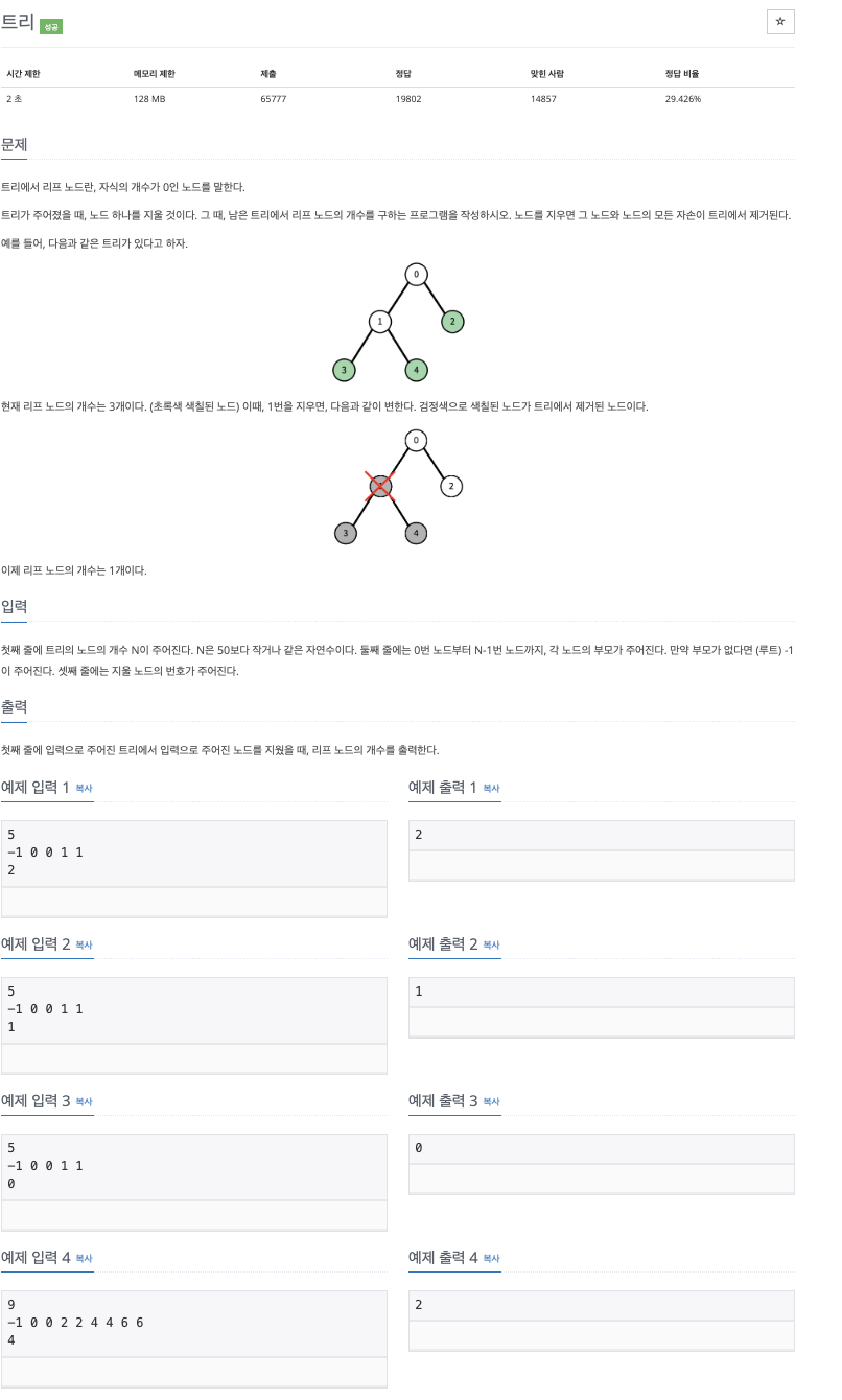 이 문제를 보면 dfs로 풀어야한다는 감이 온다 왜냐하면 삭제해야하는 노드의 끝까지 방문해서 차례대로 삭제를 해주어야 하기 때문이다.