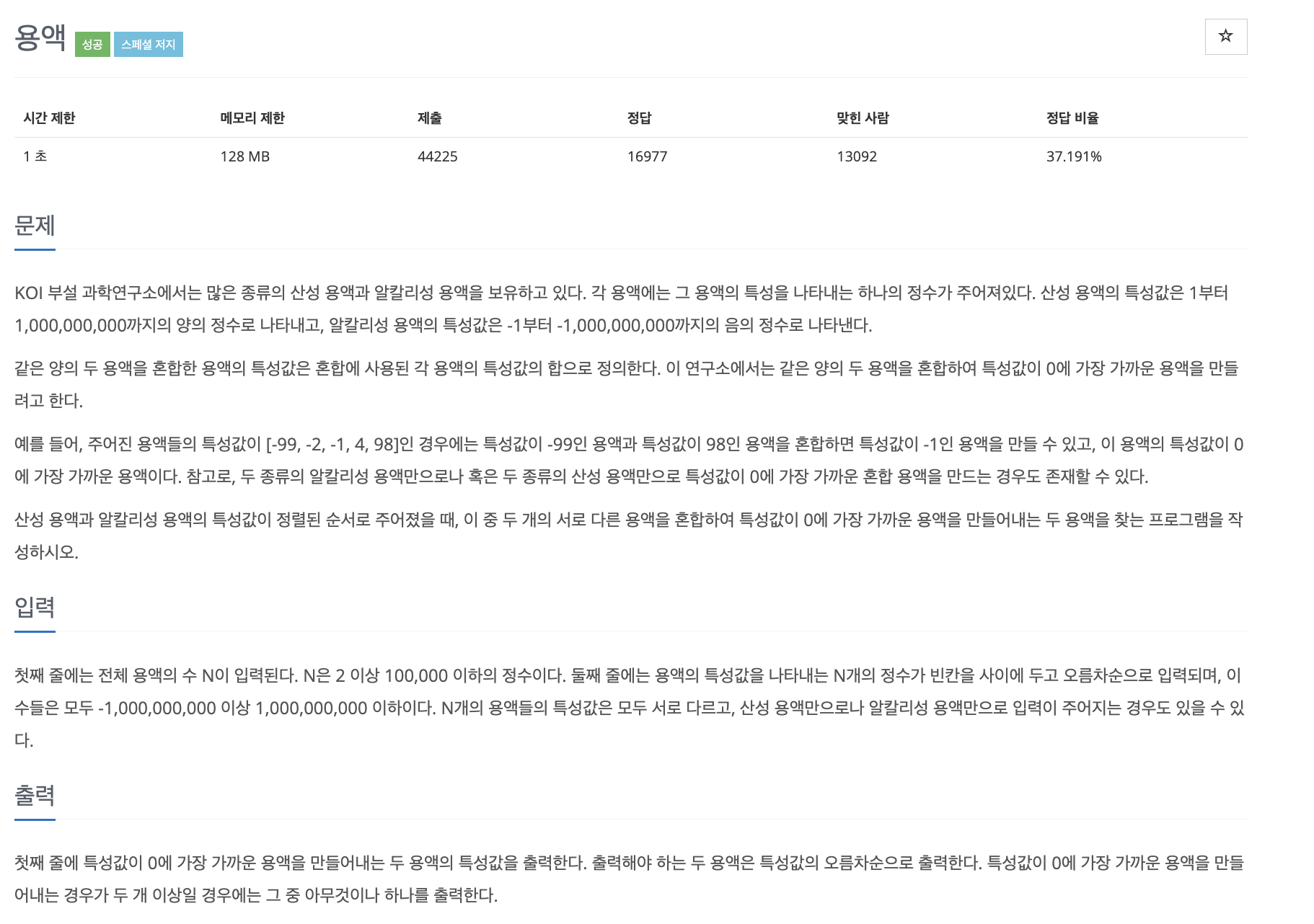 combination을 통해서 조합을 구해서 합의 최솟값을 구하는 방식으로 할까 했지만 문제를 보면 알다시피 범위가 굉장히 크기 때문에 시간초과가 발생할 확률이 높다.