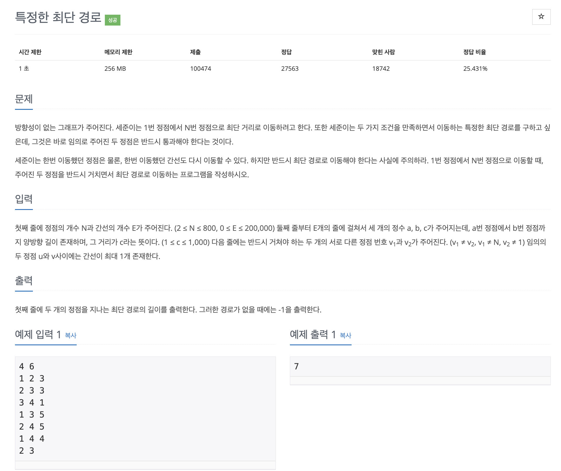 처음 이 문제를 보았을 때 한 정점에서 다른 모든 정점까지의 거리가 아니라 1번정점에서 N번정점으로 가는 최단거리를 물어보다 보니 플로이드-워샬 알고리즘으로 풀어주려고 했다.