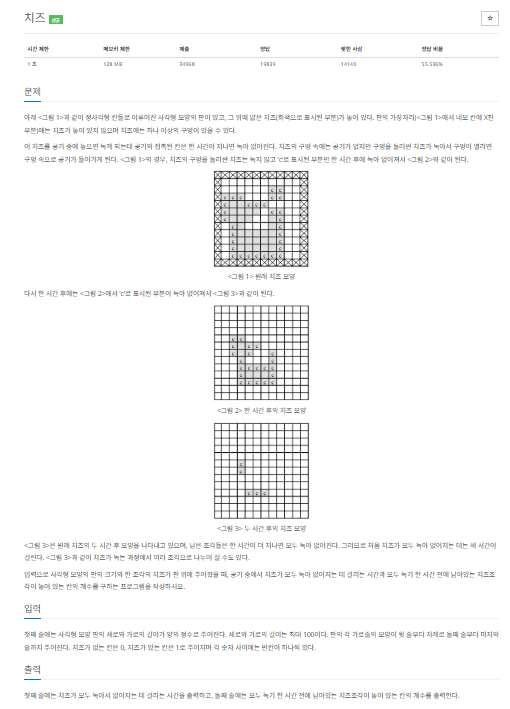 하지만 이 문제는 생각을 조금만 다르게 해주면 금방 풀린다. 처음에는 치즈의 영역에 너무 집착 했는데 반대로 공기의 영역을 먼저 구해주면된다.