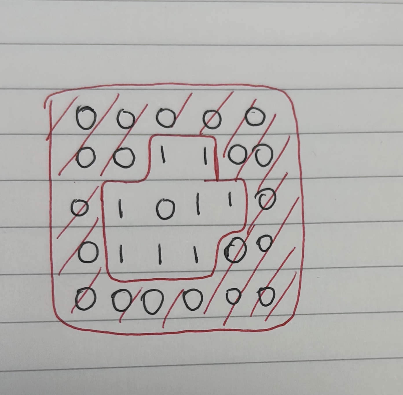 이 문제를 처음 풀려고 했을 때는 너무 어렵게 느껴졌다. BFS로 풀어야되는 건 금방 알겠는데 어떻게 테두리 영역만 따로 구하고 테두리 영역중에서 구멍이랑 맞닿은 테두리 부분은 제외 해줘야할 지 감이 잘 안잡혔다.