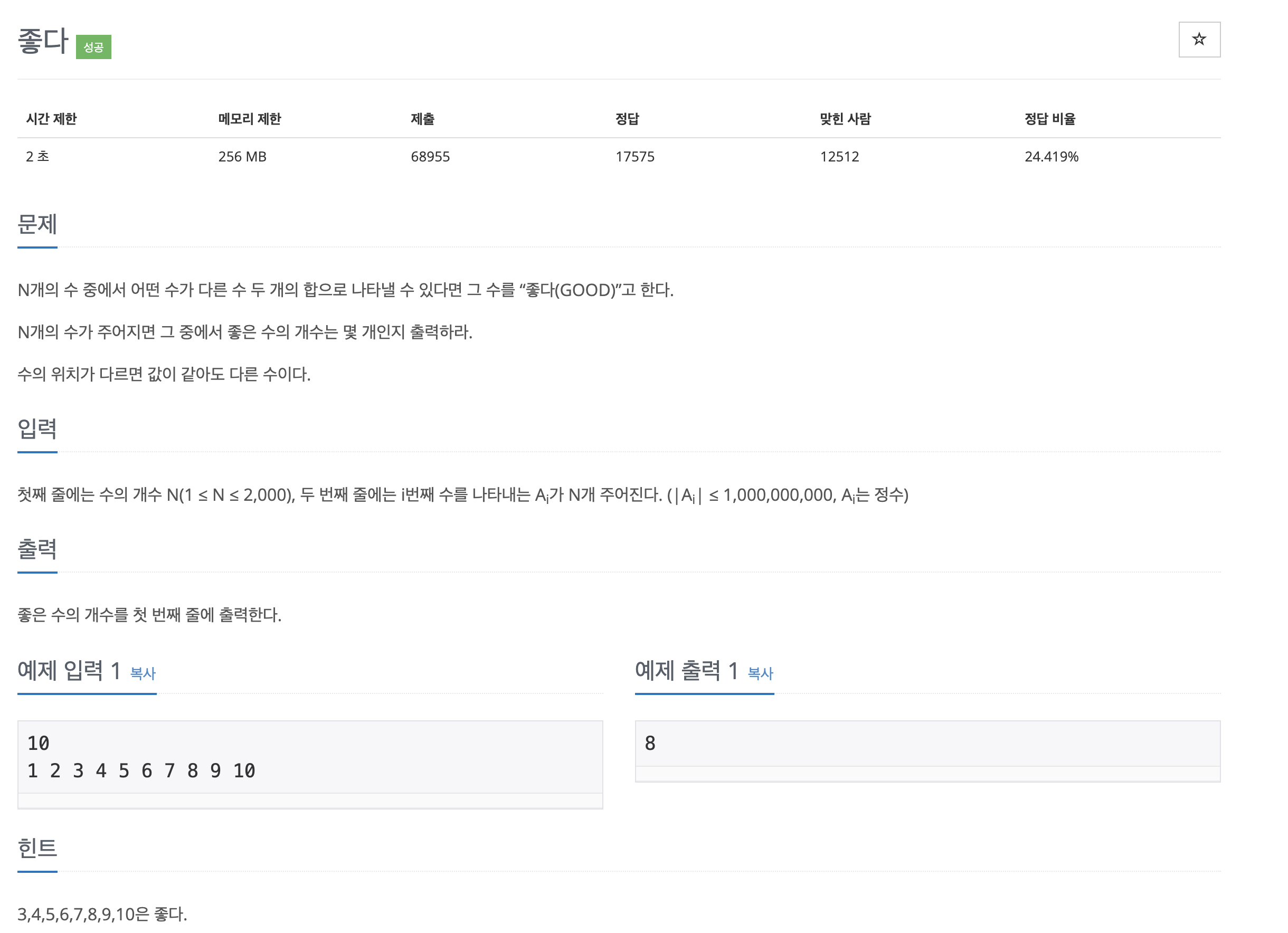 왜냐하면 문제를 잘 읽어보면 다른 수 두개의 합으로 나타내는 것이 좋은 수 이다.