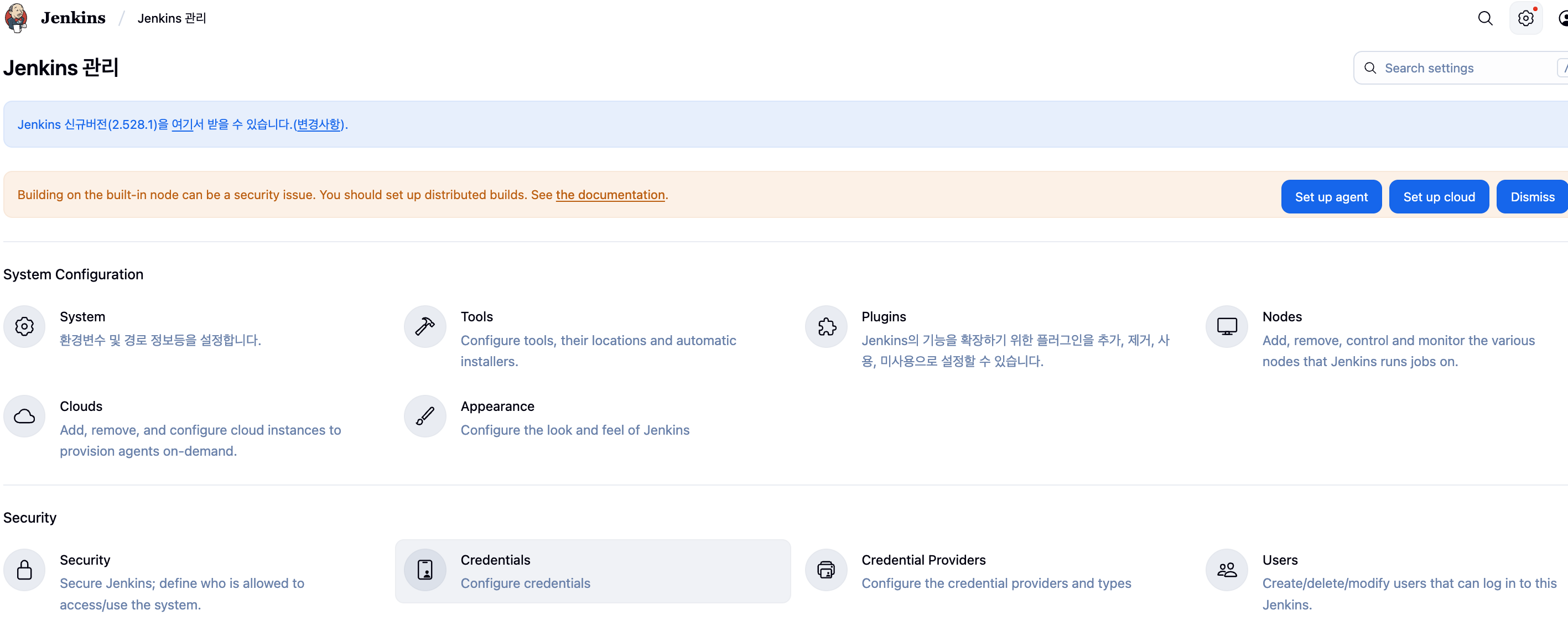 jekins 설정 부분에서 credential 를 클릭하고