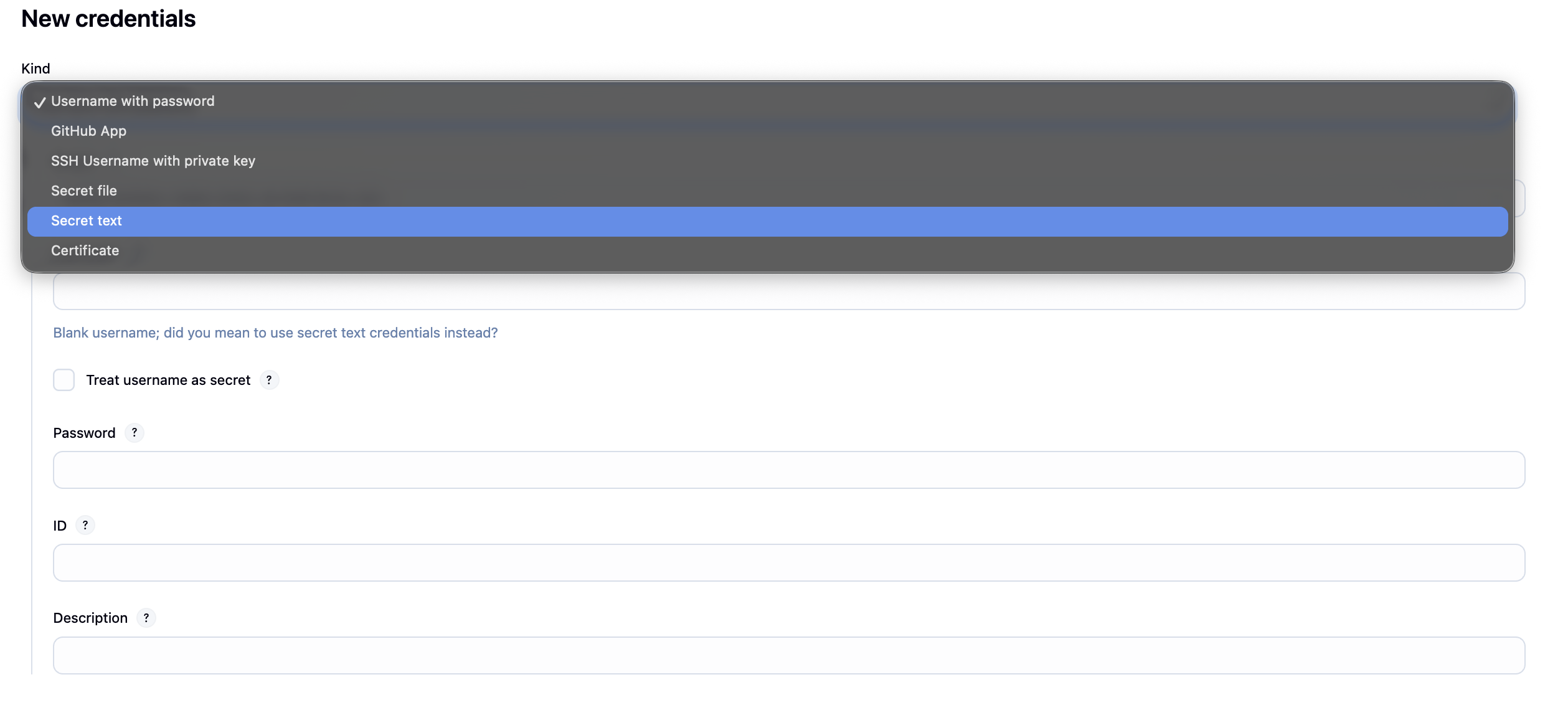 kind는 secret text로 해줬다.
